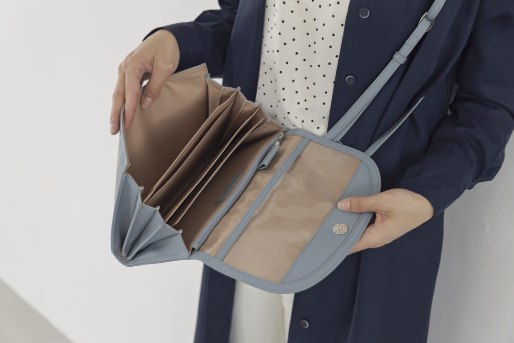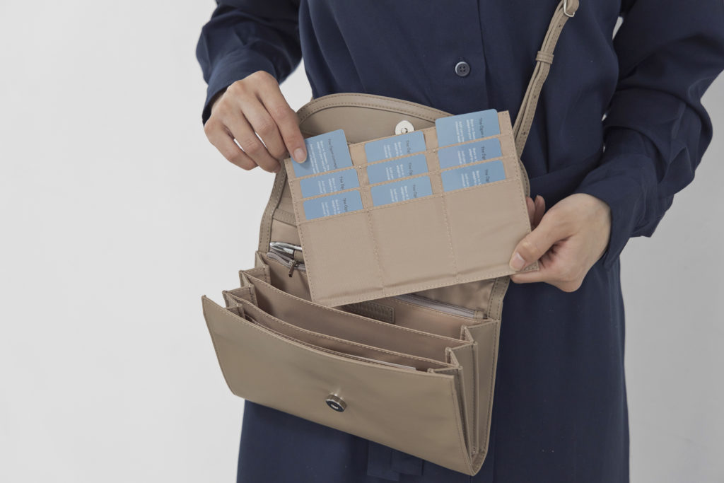 母子手帳、診察券、カードなどをたくさん入れても肩にかけて負担なく持ち歩くことが可能です。