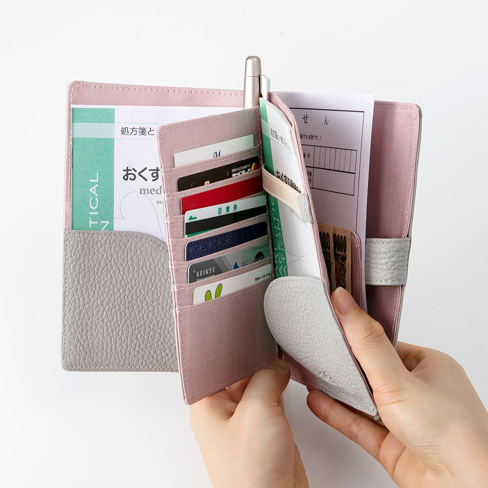 通院時におすすめ!おしゃれで優しい配色のイタリアンレザーを使用したお薬手帳ケース。