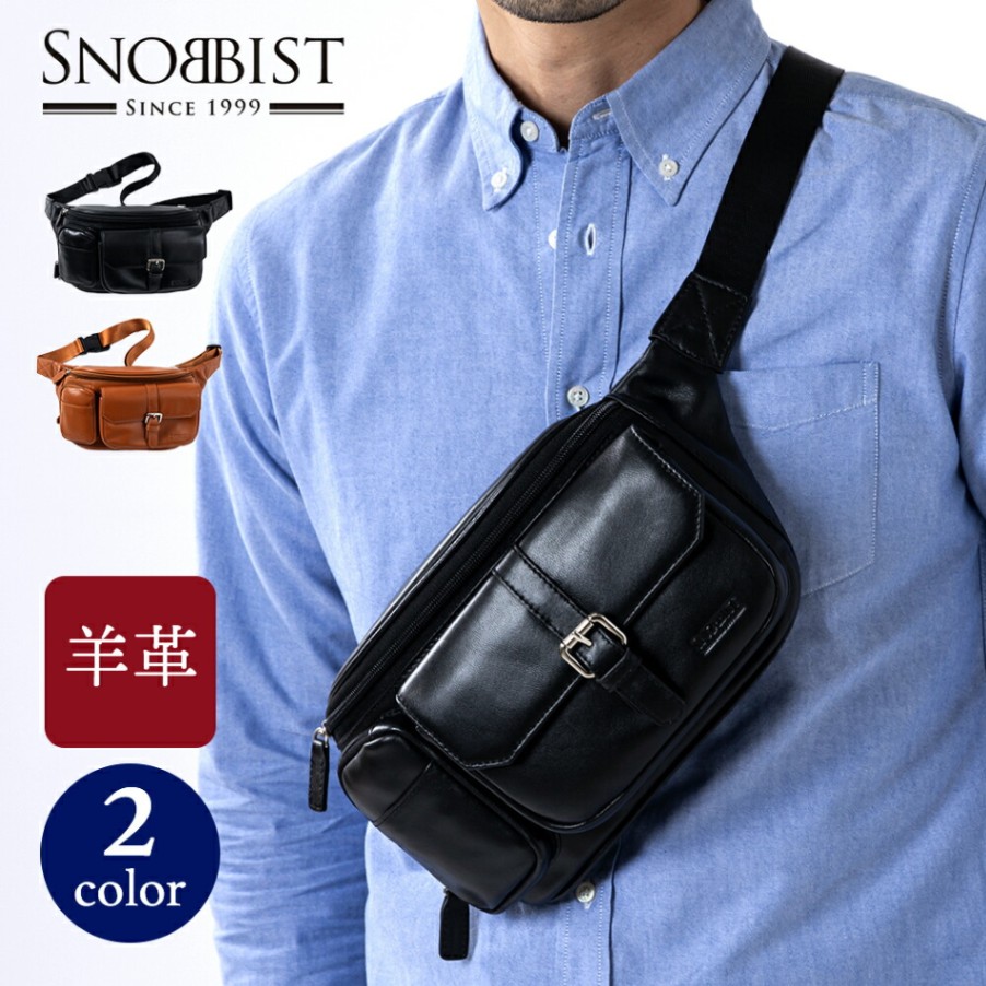 シープスキンボディバッグ 羊革 軽量 メンズ 40代 50代 黒 ブラック 男性 茶色 ブラウン おしゃれ[SNOBBIST/スノビスト][あす着対応][セール対象]