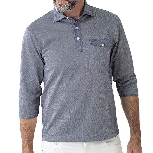 日本製 デニムライク 7分袖 ポロシャツ メンズ 春 おしゃれ 吸汗 速乾[To.EASTERN/トゥ・イースタン][あす着対応]