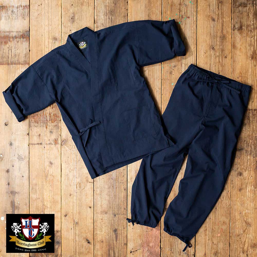 シアサッカー 作務衣 メンズ 男性 [HERRINGBONE CLUB/ヘリンボーンクラブ][セール対象][あす着対応]