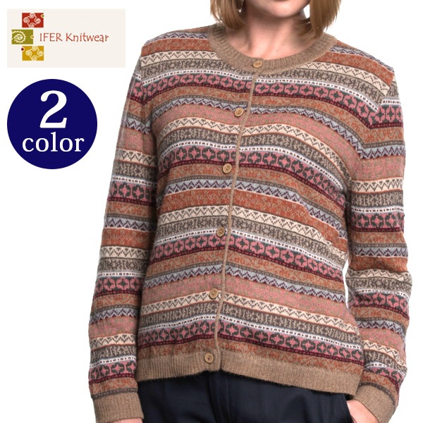 アルパカレディースフェアアイルカーディガン[IFER Knitwear/アイファーニットウェア] グレンフィールド[セール対象][あす着対応]