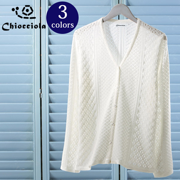 【Chiocciola/キオッチョラ】日本製 レディース 透かし編み カーディガン 羽織り 春夏 冷房対策[セール対象][あす着対応]