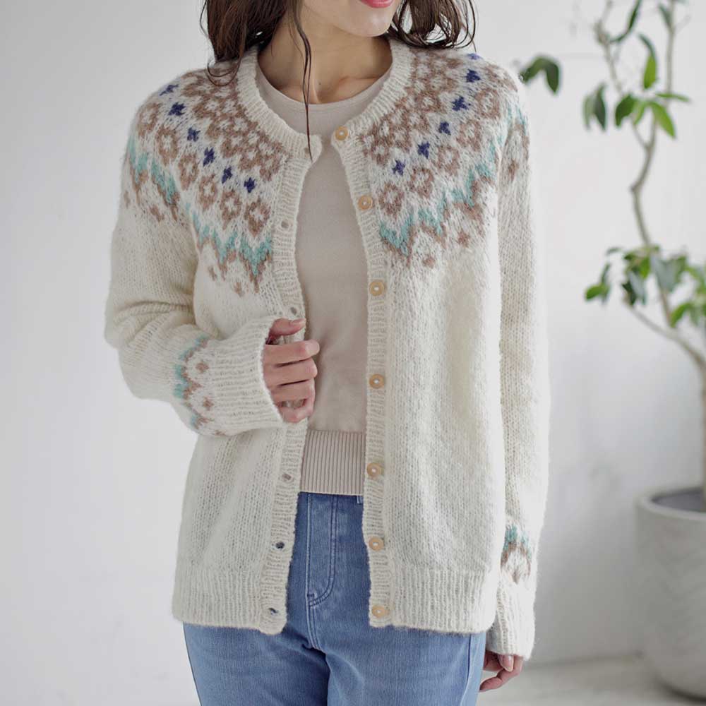 ペルー製 カーディガン ノルディック柄 アルパカ 手編み レディース [warawara/ワラワラ][あす着対応]