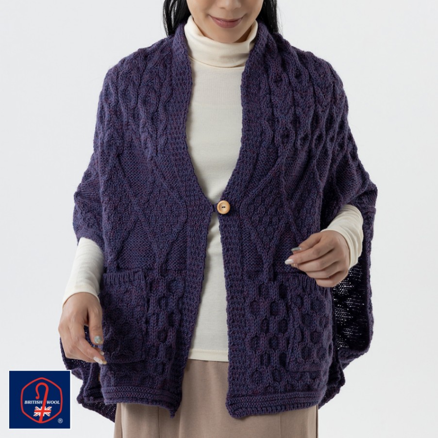 英国製 レディース フィッシャーマンズ ポンチョ ニット 冬 ウール[JM COOPER/ジェイエムクーパー][あす着対応]