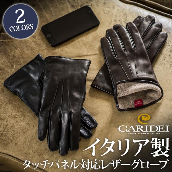 【CARIDEI/カリデイ】イタリア製タッチパネル対応レザーグローブ(メンズ)[ラムスキン手袋 クリスマスギフト] [あす着対応]