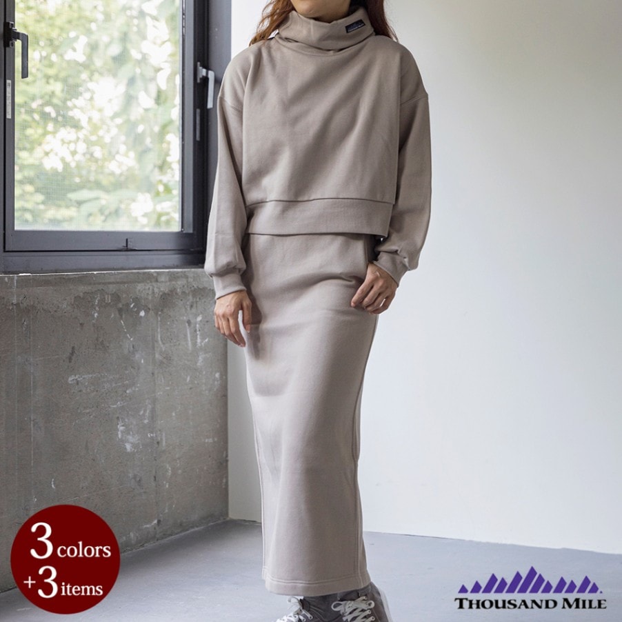レディース 裏毛 スウェット オフタートル プルオーバー ロングスカート セット アップ LADEIS OFF TURTLE SET UP THOUSAND MILE サウザンドマイル[あす着対応]