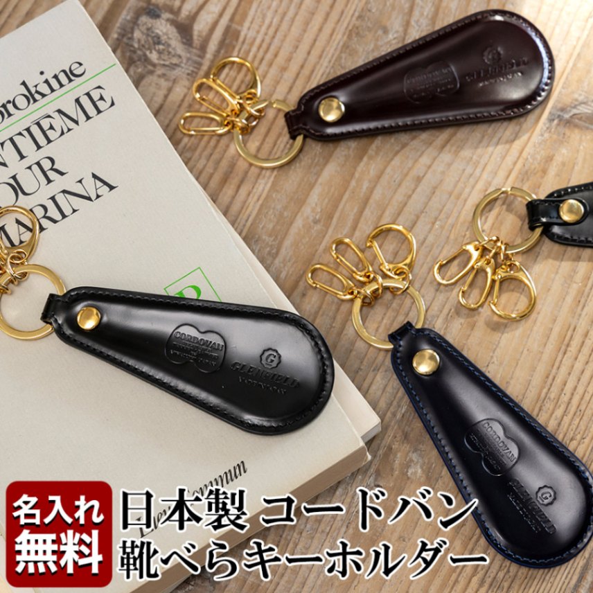 [名入れ無料]日本製 コードバン 靴ベラ付き キーホルダー レザー 本革 メンズ [GLENFIELD/グレンフィールド][あす着対応]