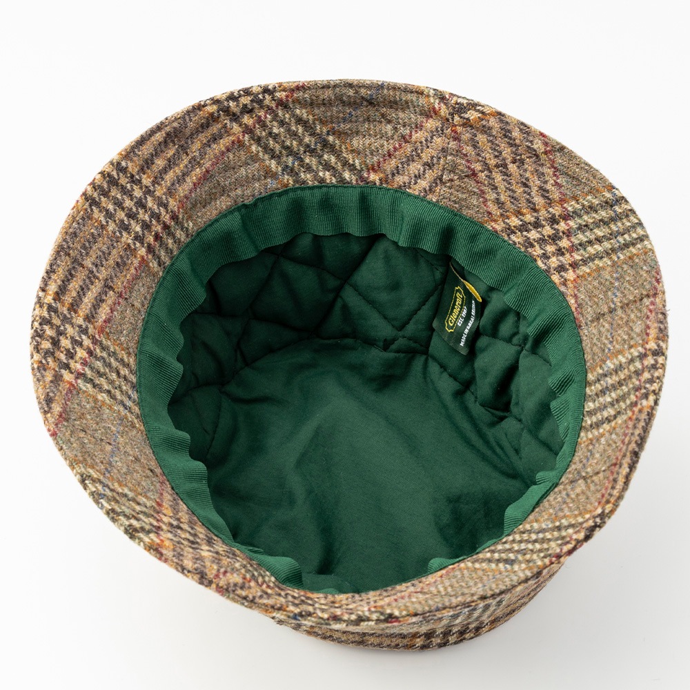ヨークシャーツイードを使用した、高級感のあるチェック柄が際立つバケットハット