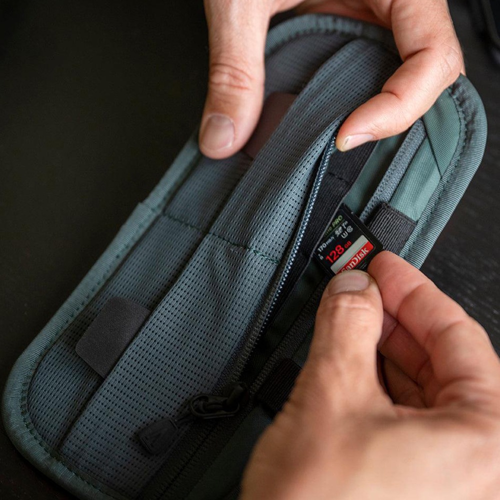 | カメラケースやErrant Pro内にドッキングできるように作られた スモールテックオーガナイザー。取り外し可能なベルクロインサートには、 メディアカード、充電ケーブル、三脚プレートなどを収納できます。 |