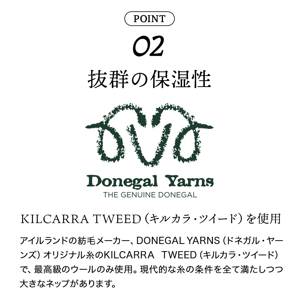 | 商品説明 | 高級ネップ糸使用のニットキャップ。 アイルランドの紡毛メーカー、DONEGAL YARNS(ドネガル・ヤーンズ)による独自のネップ(糸に繊維が小さく絡んだもの)糸が高級感を醸し出しています。 ロングは、帽子のトップ(山)に遊びがあるので、深くかぶったり浅くかぶったりと、スタイルに合わせてコーディネートを愉しめます。 ショートは、高さが浅めになっているので、スマートにかぶることができます。 リブ編みなので、伸縮性があり、頭にほど良くフィットして暖かさを保ちます。 |