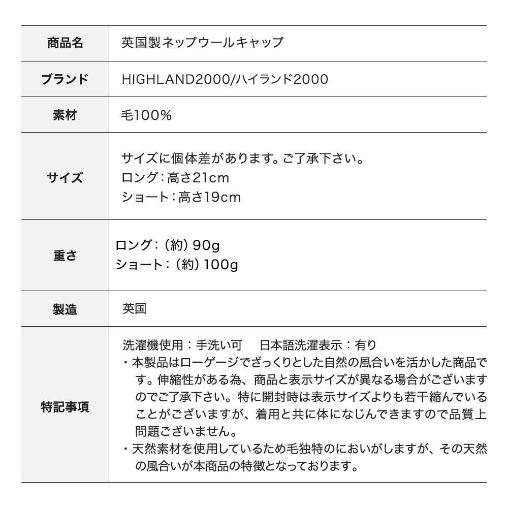 | 商品名 | 英国製ネップウールキャップ |