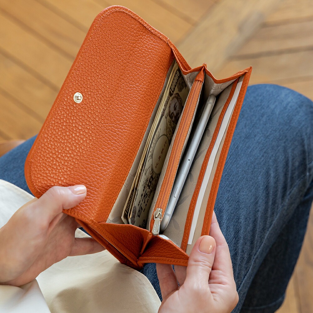お財布部分は2つの札入れ、ファスナー付き小銭入れ、オープンポケットと普段のお財布としても使用可能です。