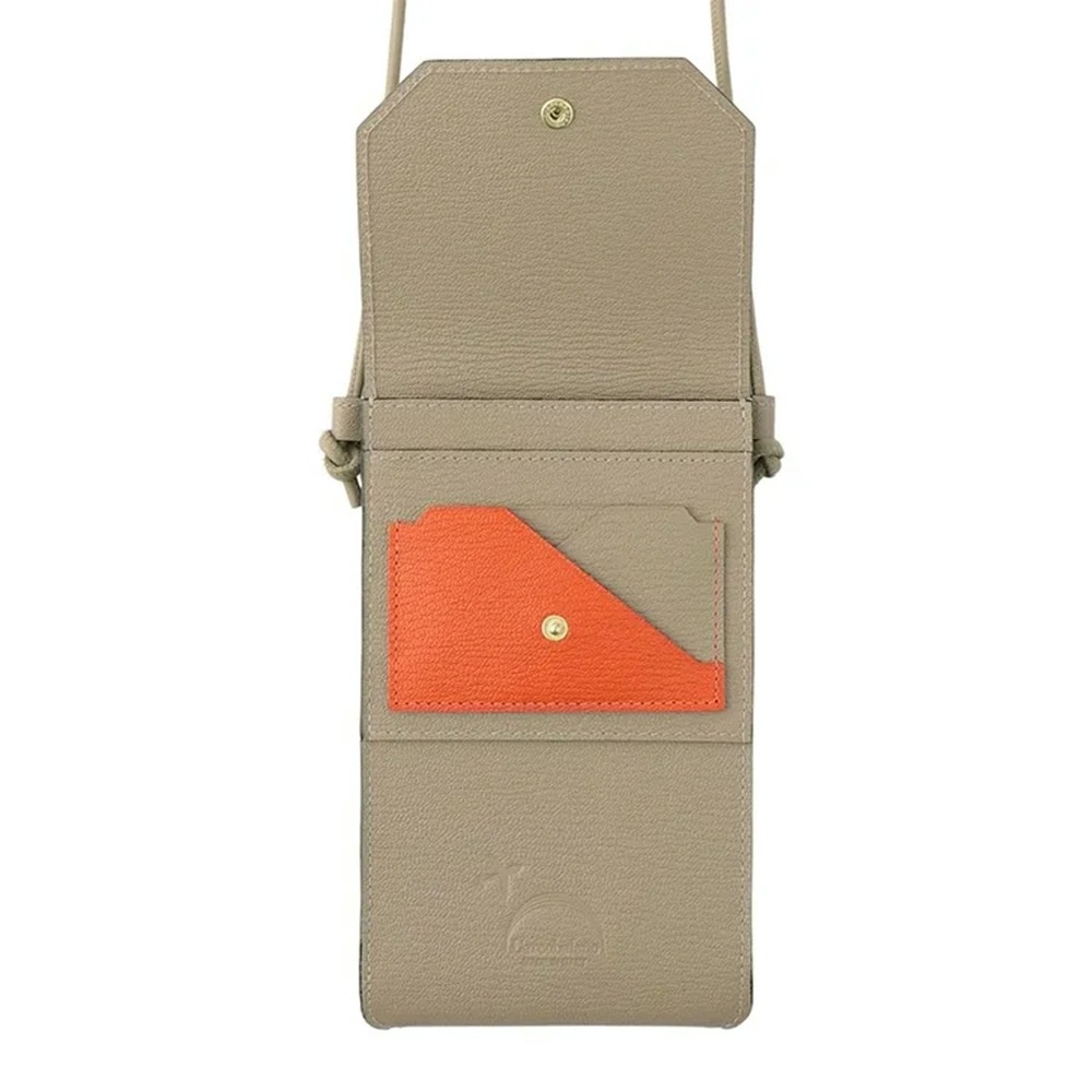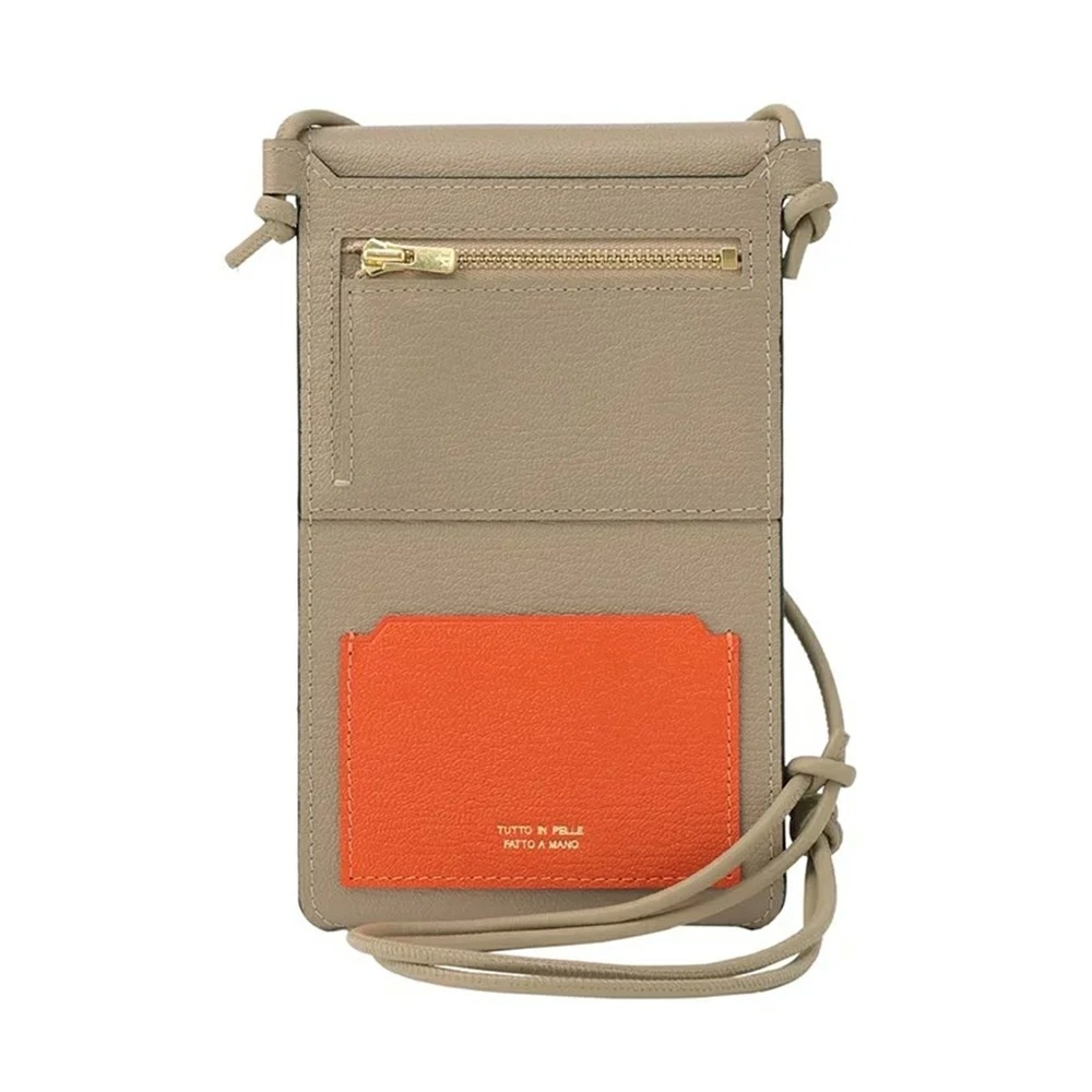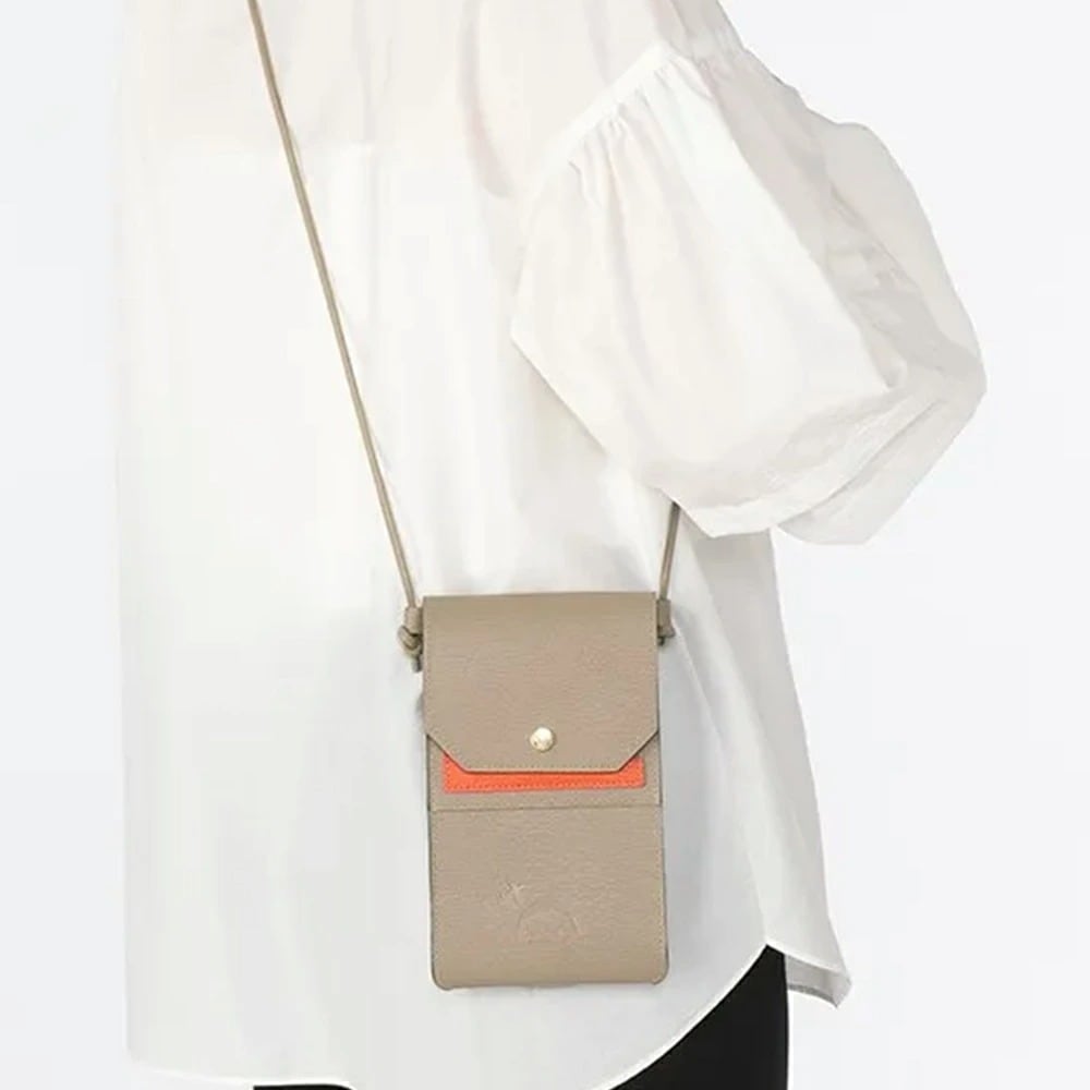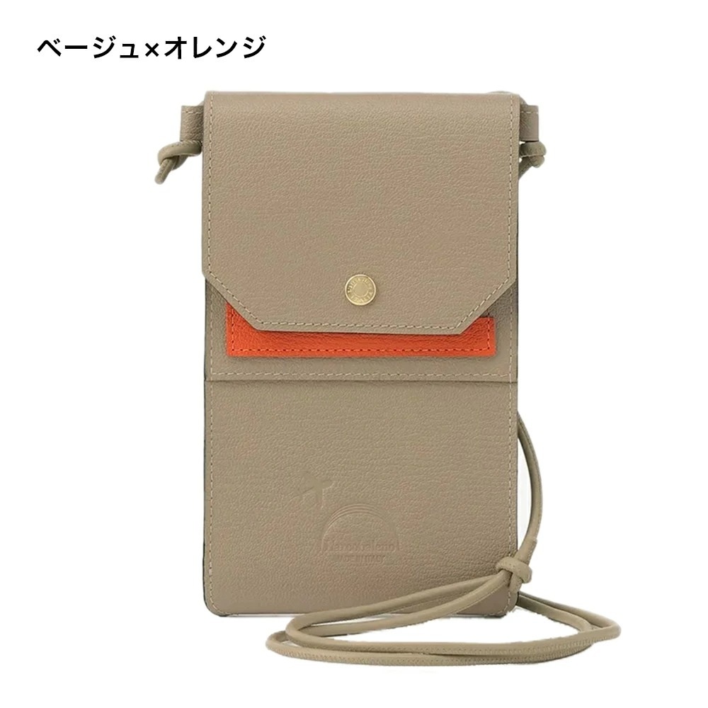 スマートフォンやパスポート、カードが入る収納力。背面のファスナーポケットは小銭の収納に便利です。