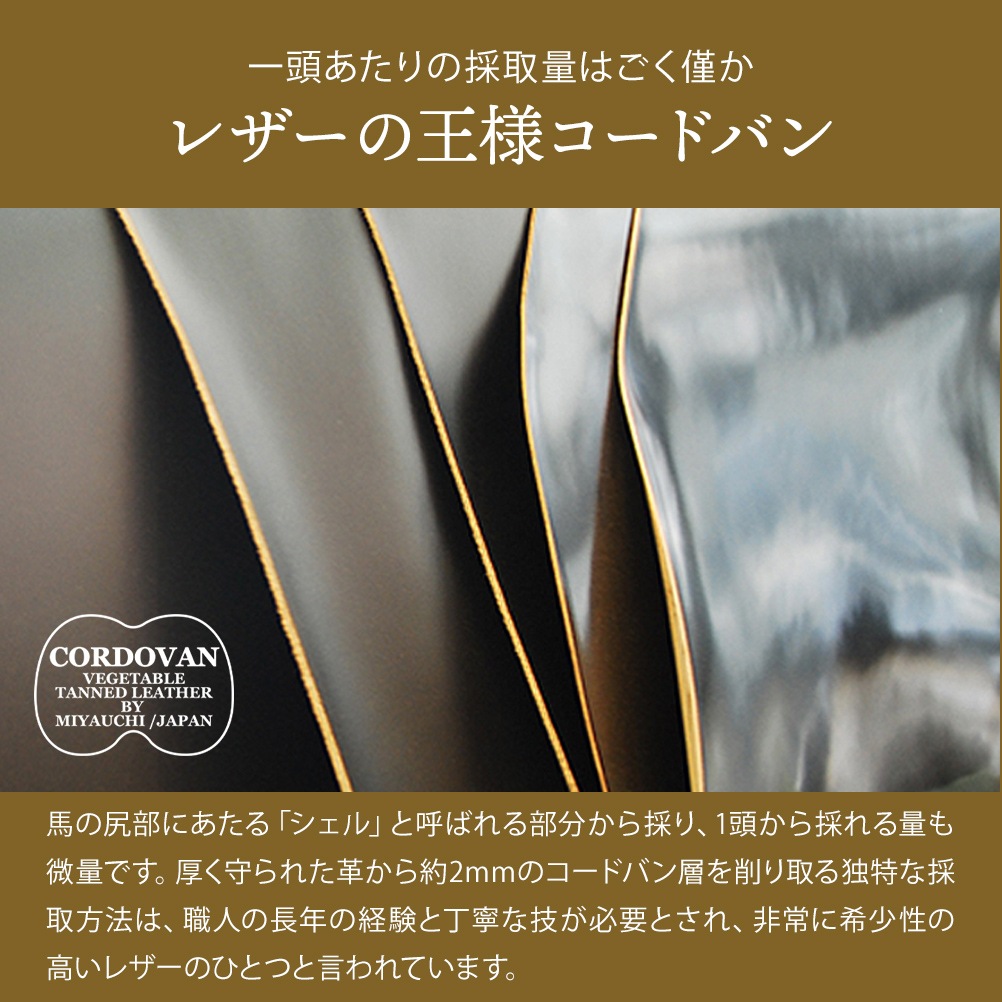 | 素材 | 【外側】馬革(コードバン)日本製、【内側】牛革 日本製、【内生地】レーヨン |